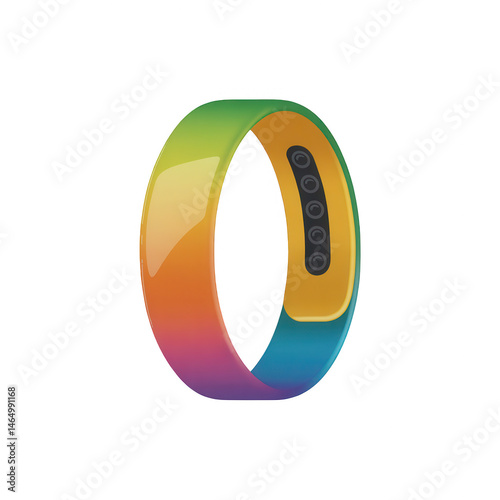 A colorful ring with sensors against a black background in a studio shot for product photography