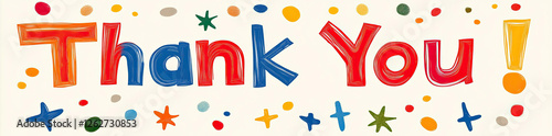 A colorful Thank You message with bright handdrawn lettering and celebratory confetti