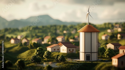 A community collecting clean water from a windpowered water tower