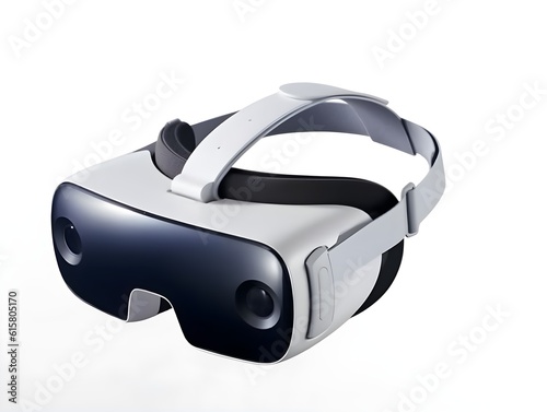 A compact and portable set of VR glasses made for smartphones, standing upright on a white background. Created generative AI