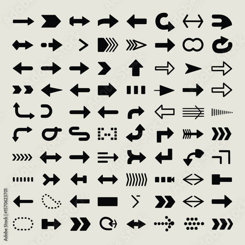 A Comprehensive Collection of Black Arrow Icons on a Light Gray Background Various Styles and Directions Included for Design and Web Use