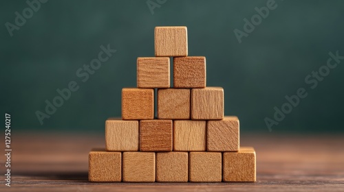 A Conceptual Representation of Financial Growth with Stacked Wooden Cubes Forming a Pyramid for Professional Investors and Structured Investment Strategies