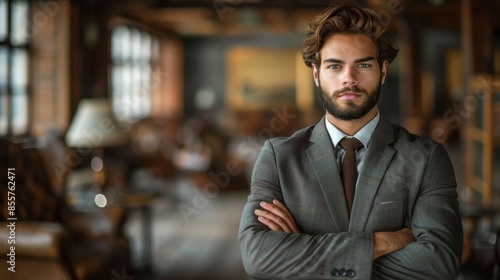 A confident and serious business professional, exuding authority and determination
