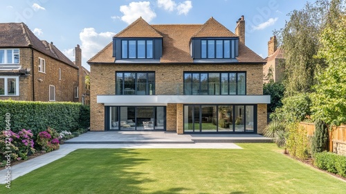 A contemporary minimalist-style detached home with large windows and a minimalist garden. A peaceful and tranquil living space.
