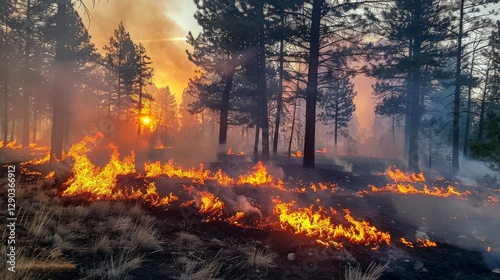 A controlled burn in a forest to prevent wildfires