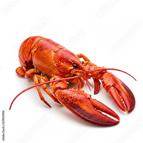 A cooked red lobster rests on a white surface,