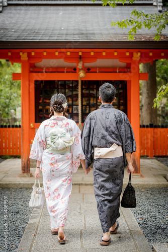 A couple wearing Japanese Yukata back view. Kyoto, Japan.