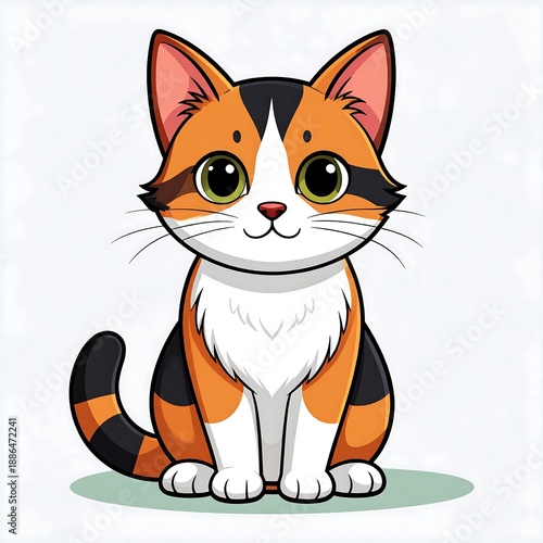 A cute cartoon calico cat with large eyes