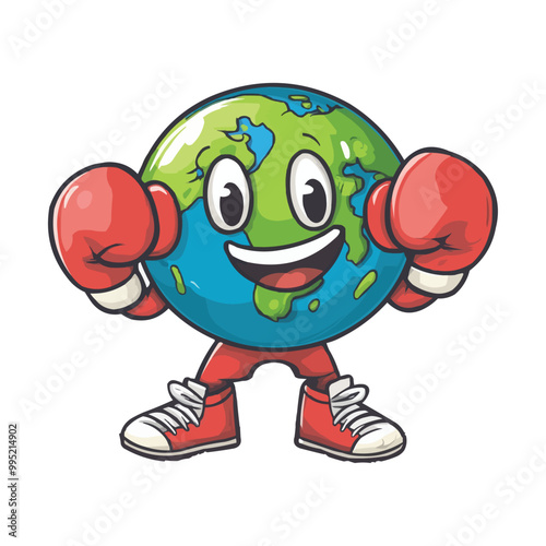 A cute cartoon style Earth with boxing gloves vector