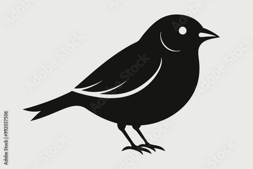 A cute Cedar Waxwing bird for log silhouette black Vector art illustration