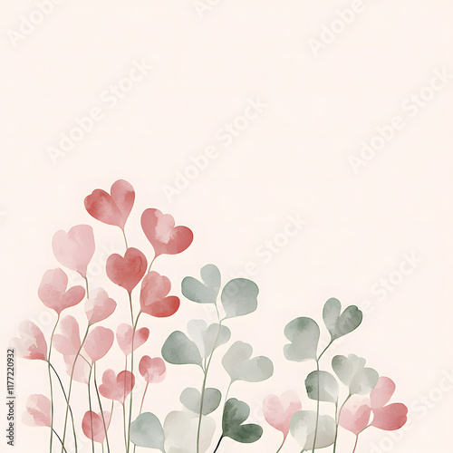 A cute Crimson Clover Leaf, horizontal border, with minimal details and a simple illustration. Watercolor botanical banner for the design of invitations, cards, congratulations