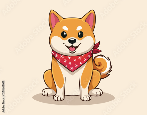 A cute dog animal sitting and a big smiling simple flat design vector.