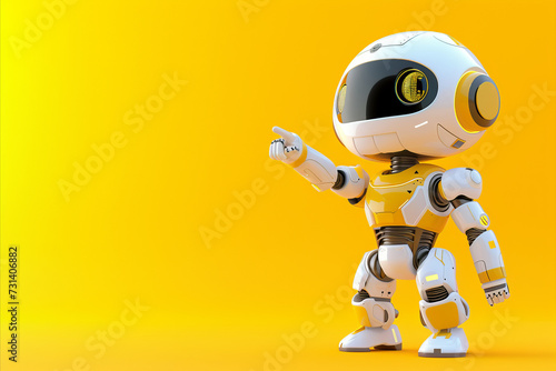 A cute friendly 3d robot character pointing. 3D Rendering style illustration