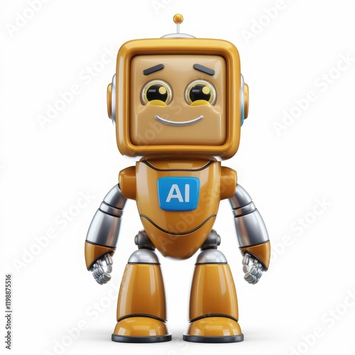A cute, friendly AI robot with a square head and orange body.