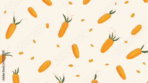 A cute wallpaper featuring tiny corn ears and husks scattered randomly on a light beige background creating a cheerful look