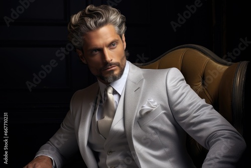 A Dapper Gentleman Relaxing in a Comfy Armchair