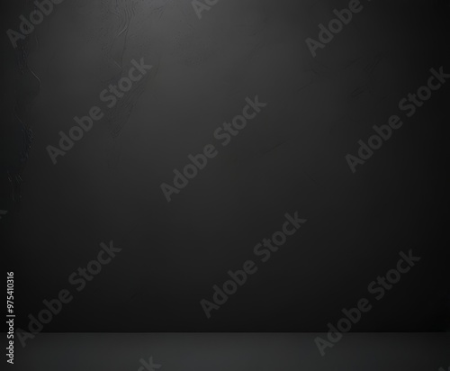 a dark, empty room with a black floor and a wall with a textured surface.
