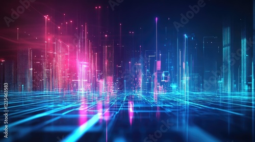 A dazzling digital cityscape with glowing neon lights and holograms, perfect for a futuristic and immersive wallpaper design.