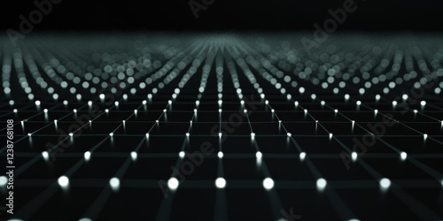 A deep black surface with minimalist, glowing grid lines, Luminous and structured composition