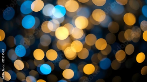 A de-focused abstract background featuring shimmering glitter lights in blue, gold, and black hues.