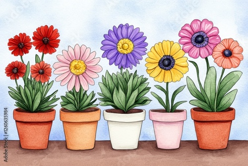 A delicate watercolor sketch of a flower shop display, beautifully arranged with colorful bouquets