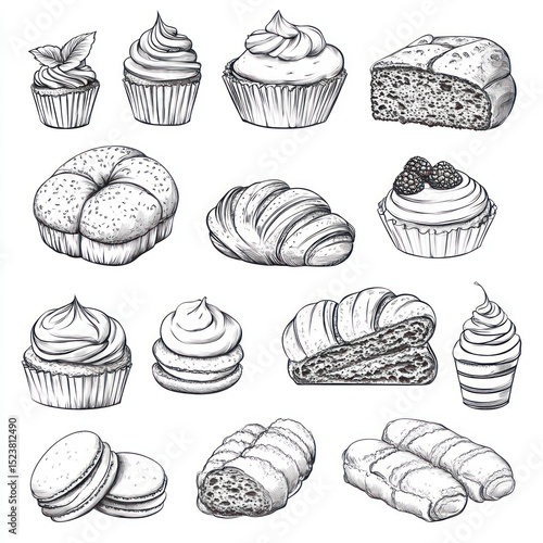 A Delicious Collection of Hand-Drawn Pastries and Cakes