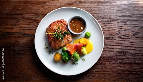 A delicious nutritious healthy lunch menu on a wooden table with copy space.
