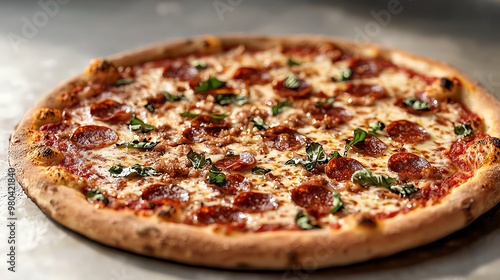 A delicious pepperoni pizza with a crispy crust and melted mozzarella cheese.