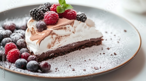 A Delicious Slice of Chocolate Raspberry Cake with Fresh Berries