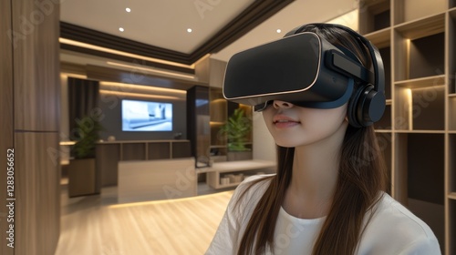 A designer from Asia is using VR technology to create a 3D interior design for an office or apartment. She's using virtual reality to bring her design to life.