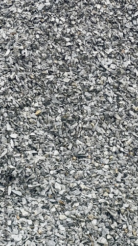 A detailed close-up of a pile of coarse gravel, showing the rough, jagged texture and varying shades of gray, creating a powerful, industrial, and abstract background.