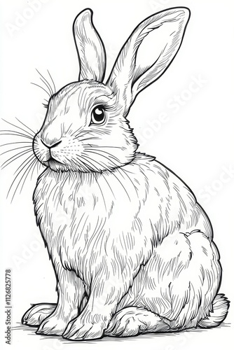 A Detailed Line Art Drawing of a Rabbit Sitting Calmly
