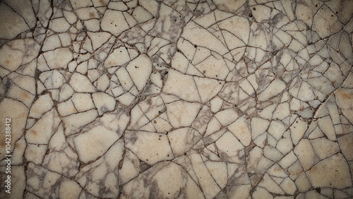 A detailed natural stone texture with intricate crack patterns and beige, brown, and gray tones. Perfect for vintage-style wallpapers, banners, and design backdrops