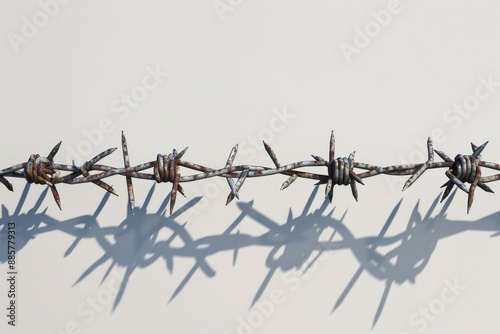 A detailed view of a barbed wire fence, suitable for use in historical or documentary contexts