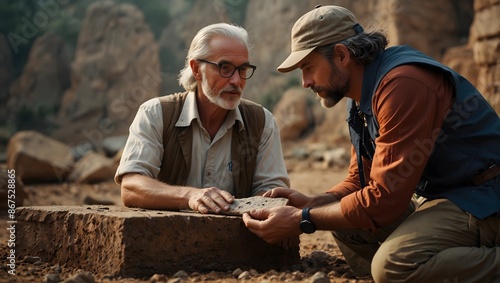 A dialogue between a geologist and an archaeologist discussing a mysterious artifact unearthed from ancient Earth ai_generated