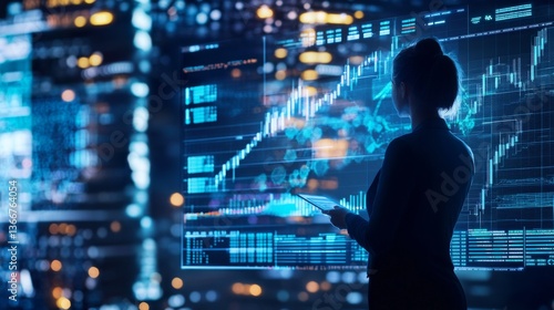 A digital asset manager designing AI enhanced wealth management tools for crypto investors, futuristic financial lab with real-time asset data, High-tech style