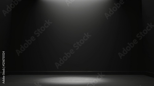 A dimly lit, empty room with a spotlight on the floor, suggesting a stage or presentation area.