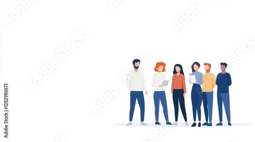 A diverse group of six people stand together, showcasing teamwork and collaboration in a minimalist, modern design.
