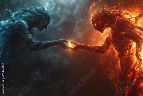 A divine hand splitting darkness with light, symbolizing the creation of day and night. Concept of creationism.