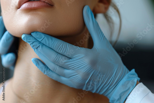 A doctor checks a patient's thyroid gland,hyperthyroidism, and throat and neck swelling