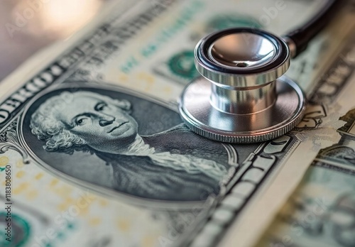 A dollar bill with a stethoscope on top of it