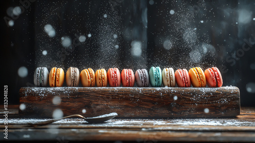 A dramatic dark background with vibrant macar
