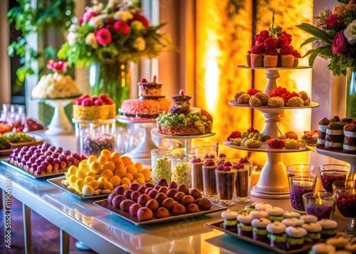 A dreamy dessert buffet awaits! Indulge in delicious wedding candy, party food, and sweet treats at your reception banquet.