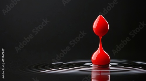 A drop of red liquid falling into a pool of water