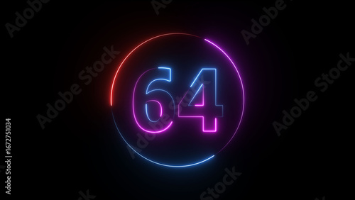 A dynamic circular illustration, and glowing neon number 64 illustration . on a black background. and creating a stunning illustration 4k illustration