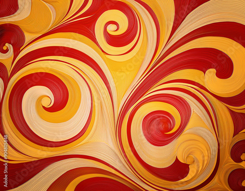 A dynamic retro summer background featuring bold swirling patterns in warm yellow and red