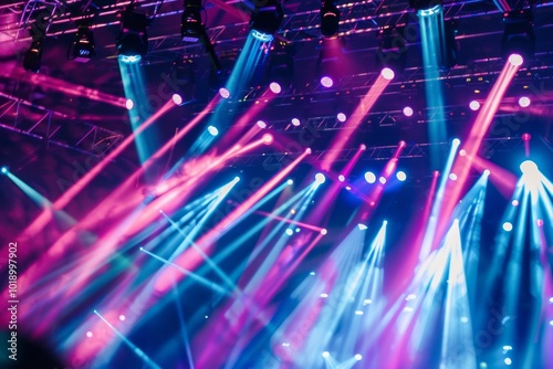 a dynamic scene of a concert with spectacular stage lighting
