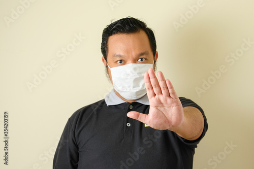 a fat Asian man wearing a mask