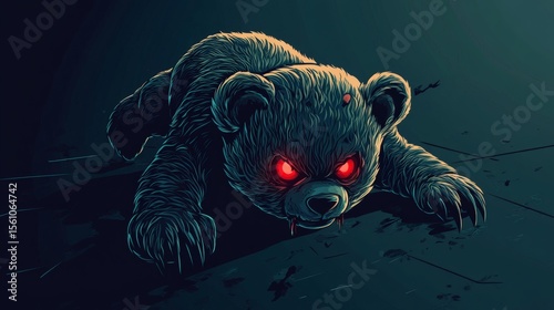 A Fearsome Bear With Crimson Glowing Eyes Crawls Forward