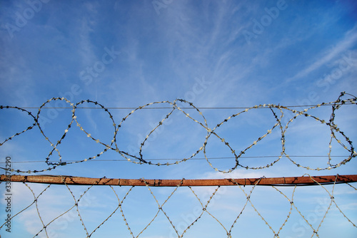a fence with barbed wire against a beautiful sky